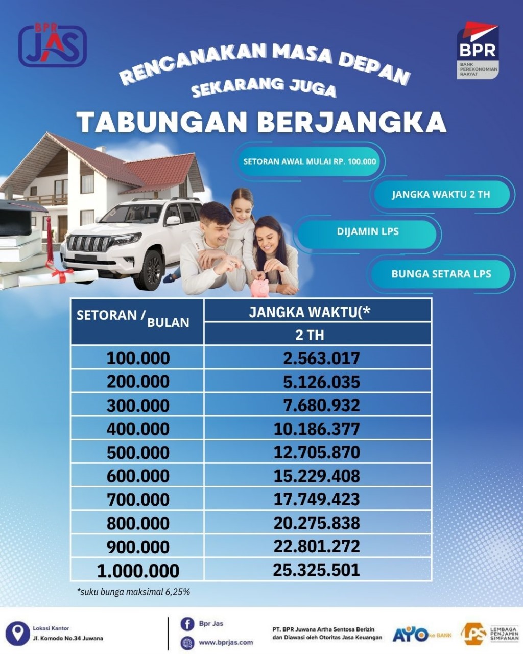 Tabungan Berjangka di BPR (Bank Perkreditan Rakyat) adalah produk simpanan yang mewajibkan nasabah untuk menyetorkan dana secara rutin dalam jangka waktu tertentu, dan hanya bisa dicairkan saat jangka waktu telah berakhir (jatuh tempo).